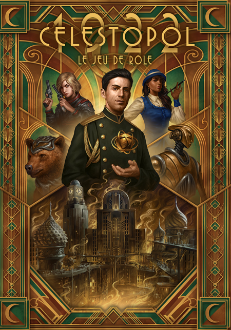 Pour ma part, j’ai travaillé sur tout ce qui concerne l’univers justement, l’organisation de la ville, sa population, ses figures marquantes, ses lieux, cachés ou pas, ce qui se passe sur Terre pendant ce temps, de la conquête de la Lune aux Années folles version Célestopol… La dimension uchronie qui est très présente dans les deux recueils est donc bien entendu toujours là, et même plus patente encore. Et si vous n’avez jamais ouvert un Célestopol mais que le jeu vous intrigue, il a été pensé comme une entité indépendante.
